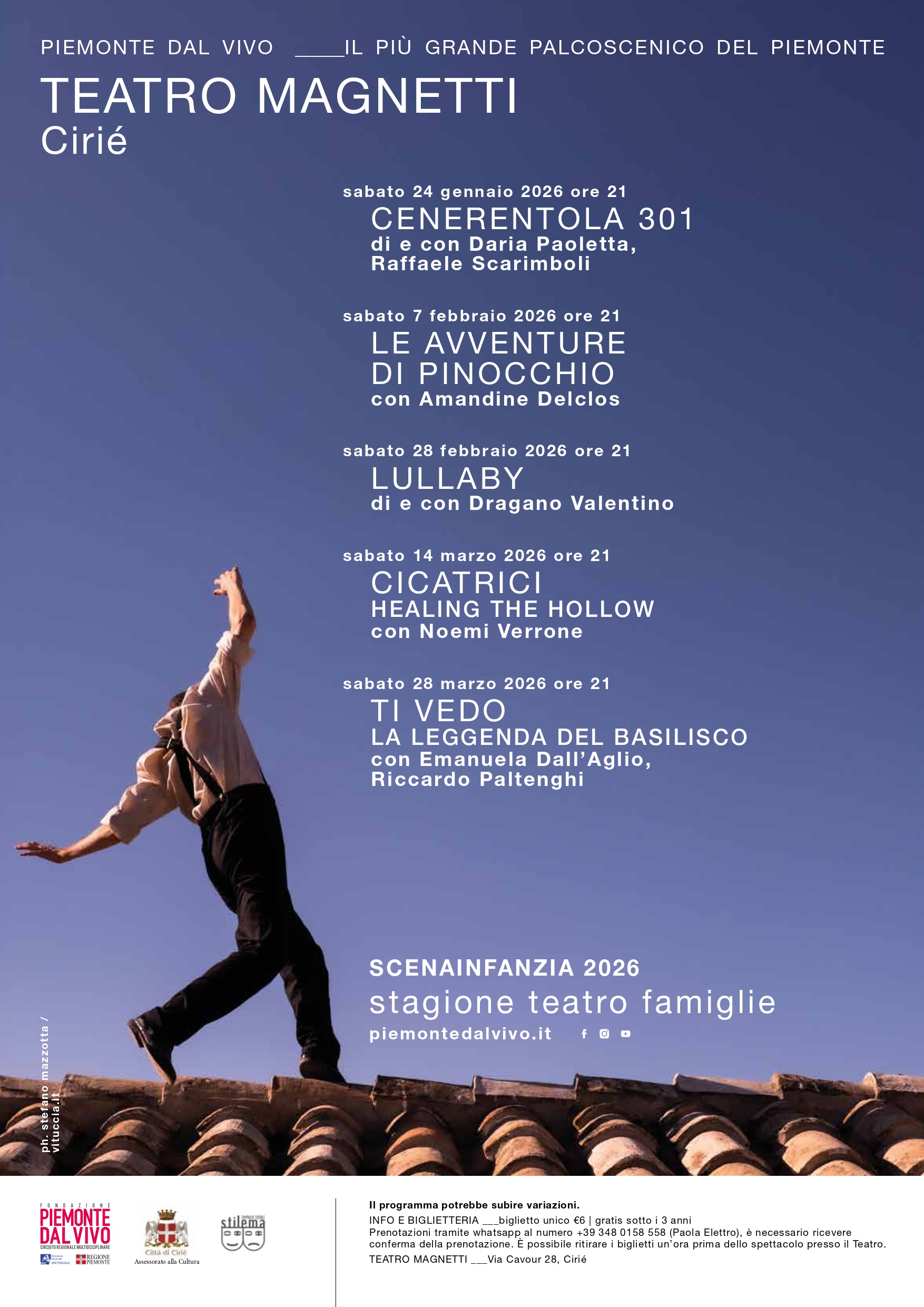 Inizia a fine gennaio Scenainfanzia, la Stagione Teatrale per ragazzi e famiglie della Città di Cirié, realizzata in collaborazione con la Fondazione Piemonte Dal Vivo e con la Compagnia Teatrale Stilema.